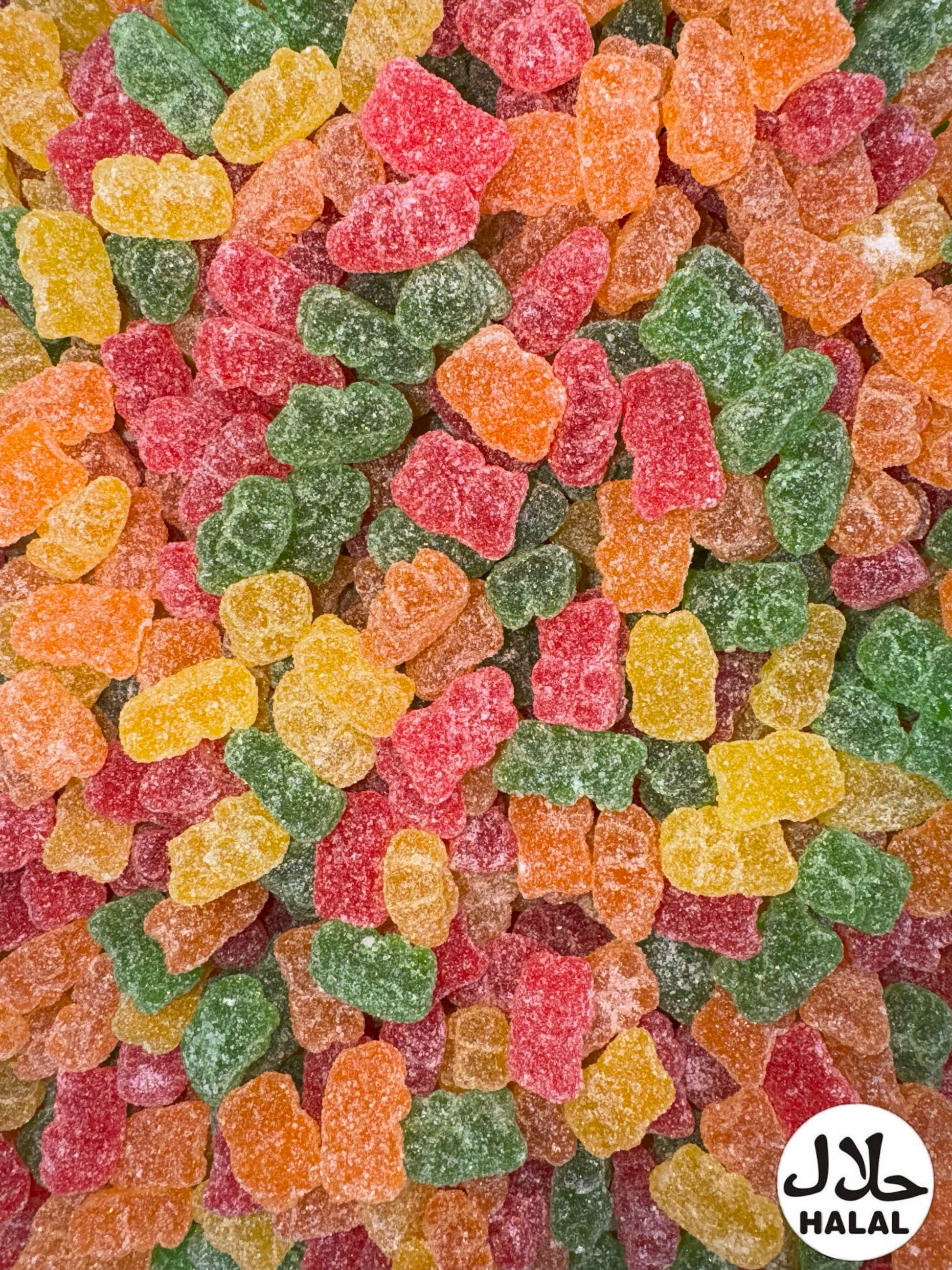 Zutaten: Glukosesirup, Zucker, Rindergelatine, Frucht- und Pflanzenkonzentrate (Erdbeere, Zitrone,Apfel,Pfirsich,Orange, Exotische Früchte,Bananen, Ananas), Säuerungsmittel (Citronensäure),Speißestärke, pflanzliches Öl (Palm), Aroma, Lebensmittelfarbe (gelb, orange, grün, blau, rot), Überzugsmittel (Carnaubawachs, Bienenwachs weiß und gelb), Farbstoffe. Kann Spuren von Milch, Soja und Gluten enthalten.